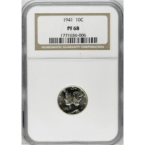 1941 10C PR68 NGC. Fully struck and brilliant, with a