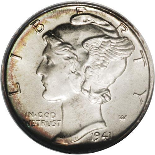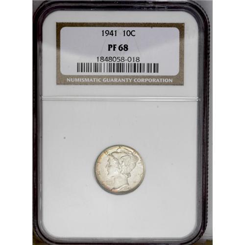 <B>1941<10C> PR68 NGC.</B></I> Superlative, with glassy surfaces and rainbow peripheries. As expected, essentially perfect, with the high eye appeal one would expect of a Superb-Gem.<BR><I>From The Lewis (Tahoe) Collection.</B></I>