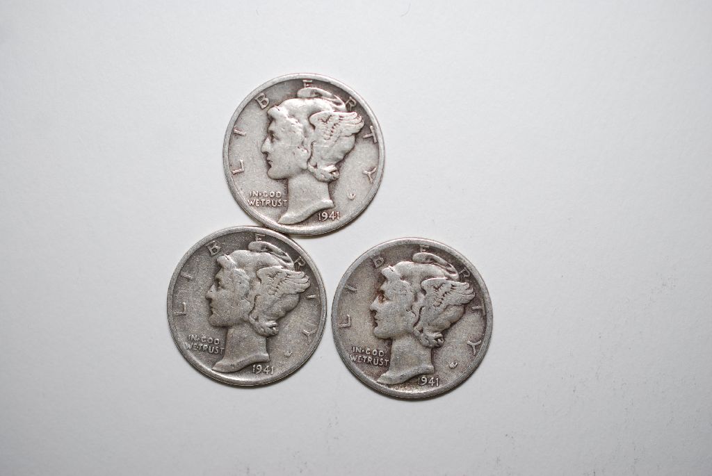 1941, 1941-D & 1941-S Mercury One Dime; Lot of 3; EST. $10-20