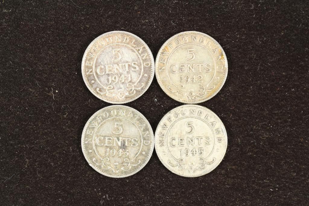 1941,1942,1943 & 1945 NEWFOUNDLAND SILVER 5 CENTS