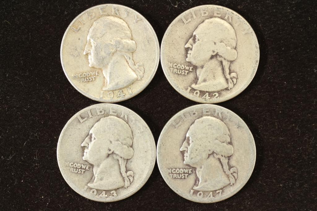1941,1942,1943 & 1947 WASHINGTON SILVER QUARTERS