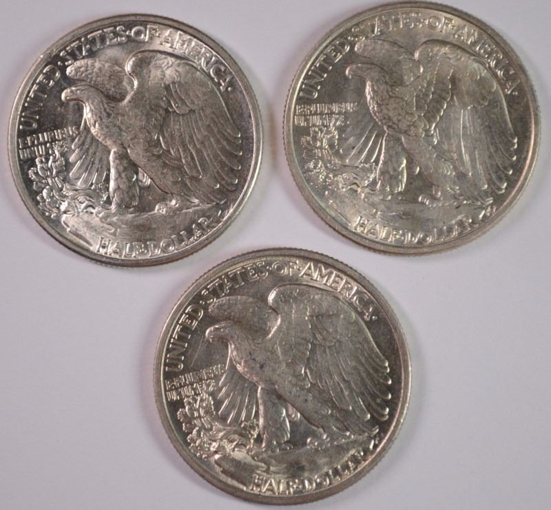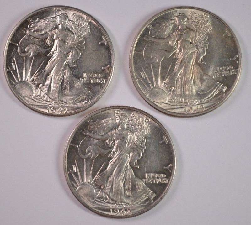 1941, 1942 & 1943 WALKING LIBERTY HALF DOLLARS, CHOICE BU+