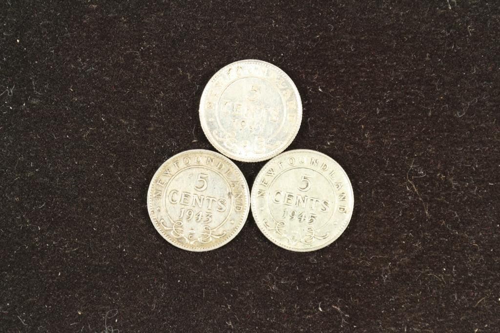 1941, 1943 & 1945 NEWFOUNDLAND SILVER 5 CENTS
