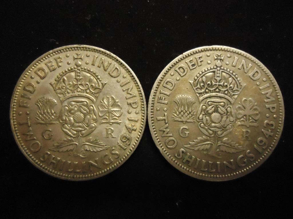 1941 & 1943 GREAT BRITAIN SILVER 2 SHILLINGS