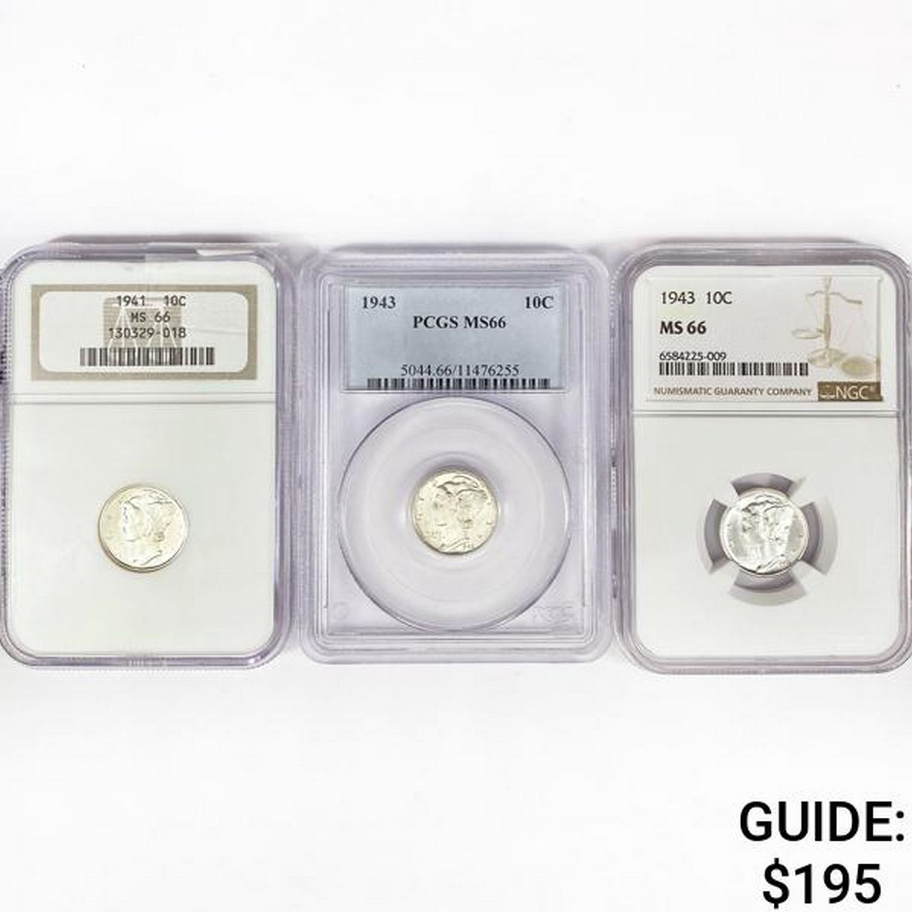 1941-1943 SET (3) Mercury Silver Dime NGC,PCGS MS6