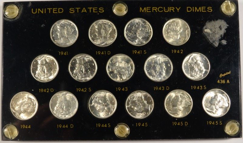 1941-1945 MERCURY DIME SET, SUPERB GEM BU IN PLASTIC HOLDER (15) COINS COMPLETE