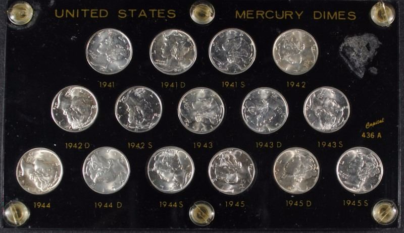 1941-1945 MERCURY DIME SET, SUPERB GEM BU IN PLASTIC HOLDER (15) COINS COMPLETE
