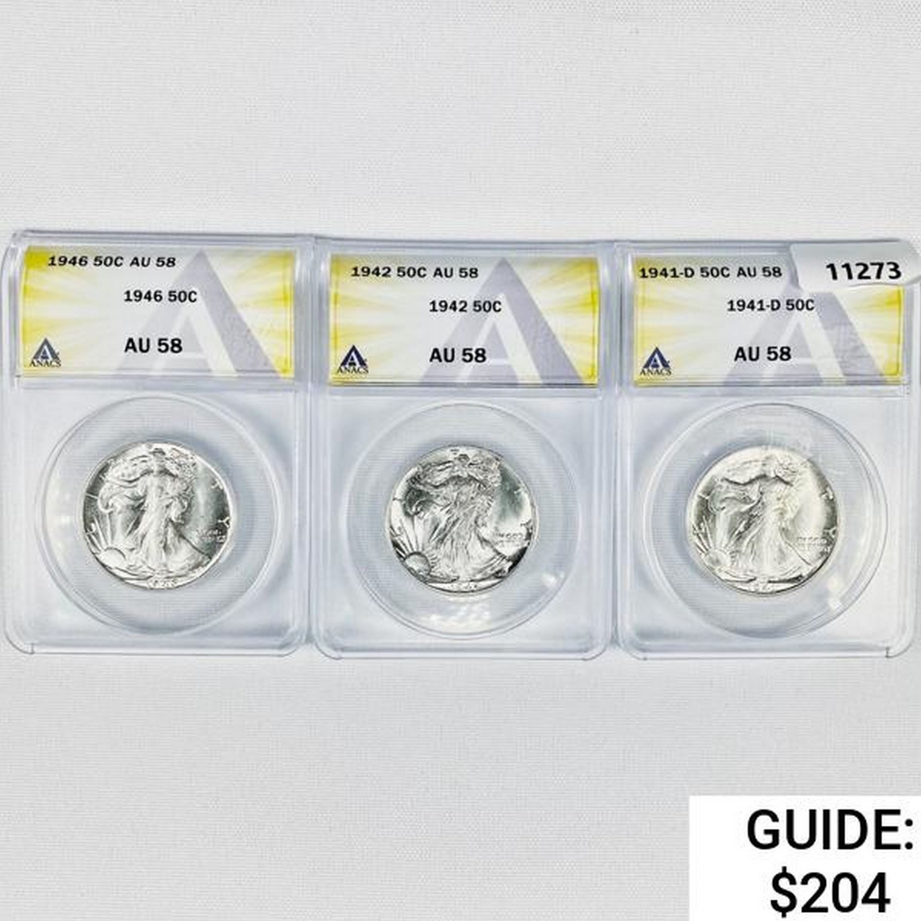 1941-1946 Set [3] Walking Liberty Half Dollar ANAC