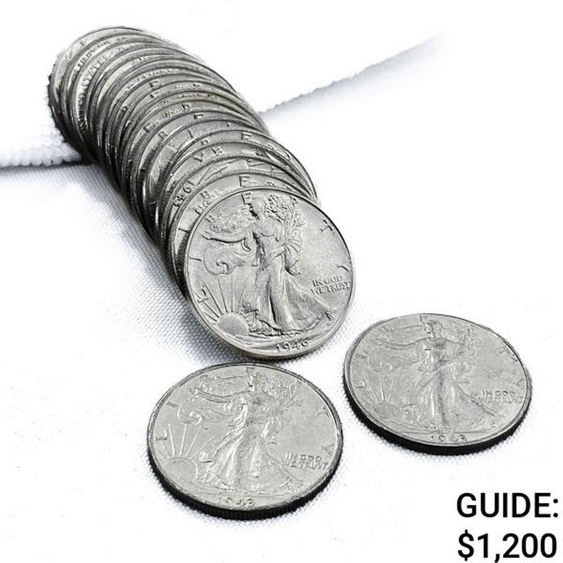 1941-1946 Walking Liberty Half Dollars Roll(20 Coi