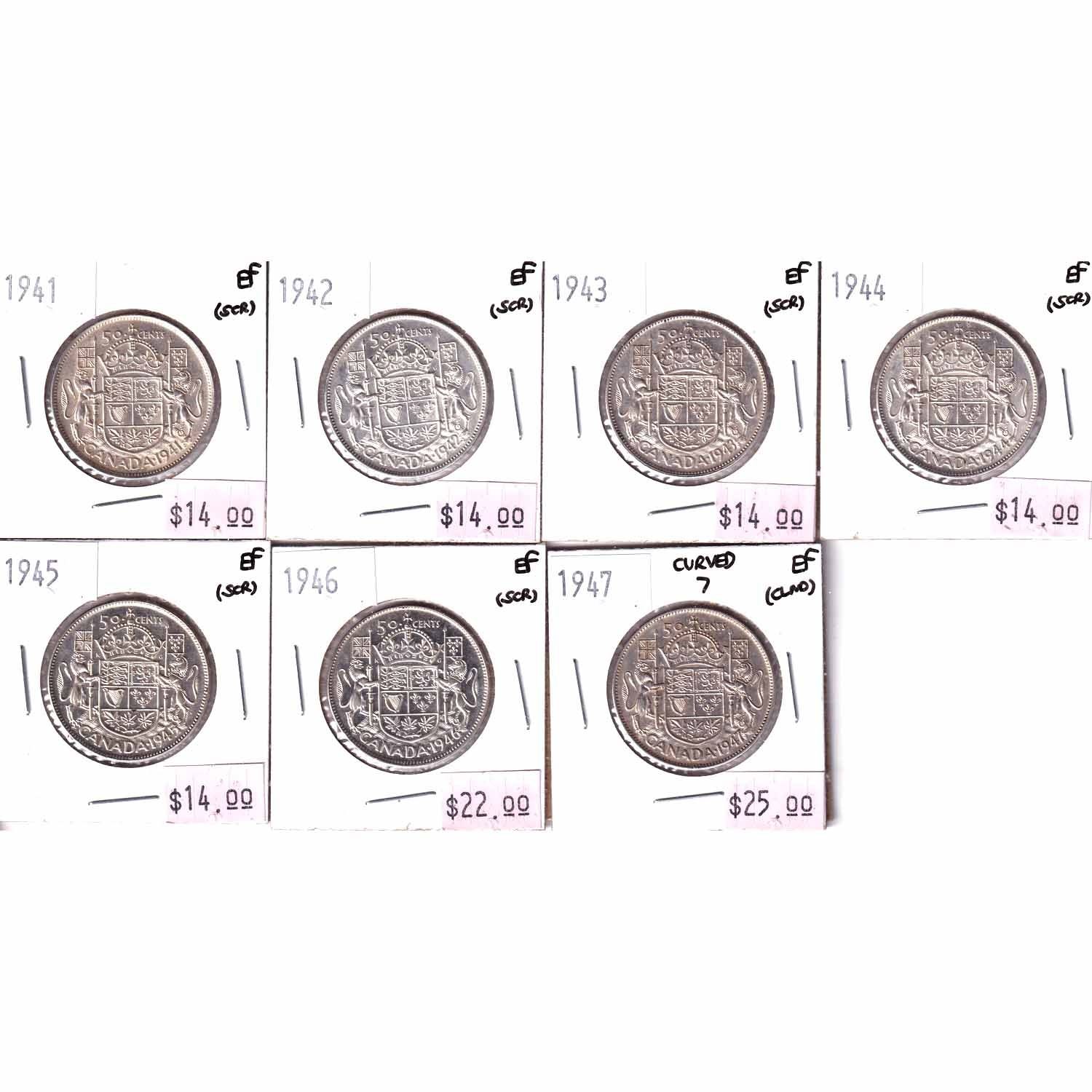 1941-1947 Canada 50-cent in EF Condition (scratched or cleaned). 7pcs