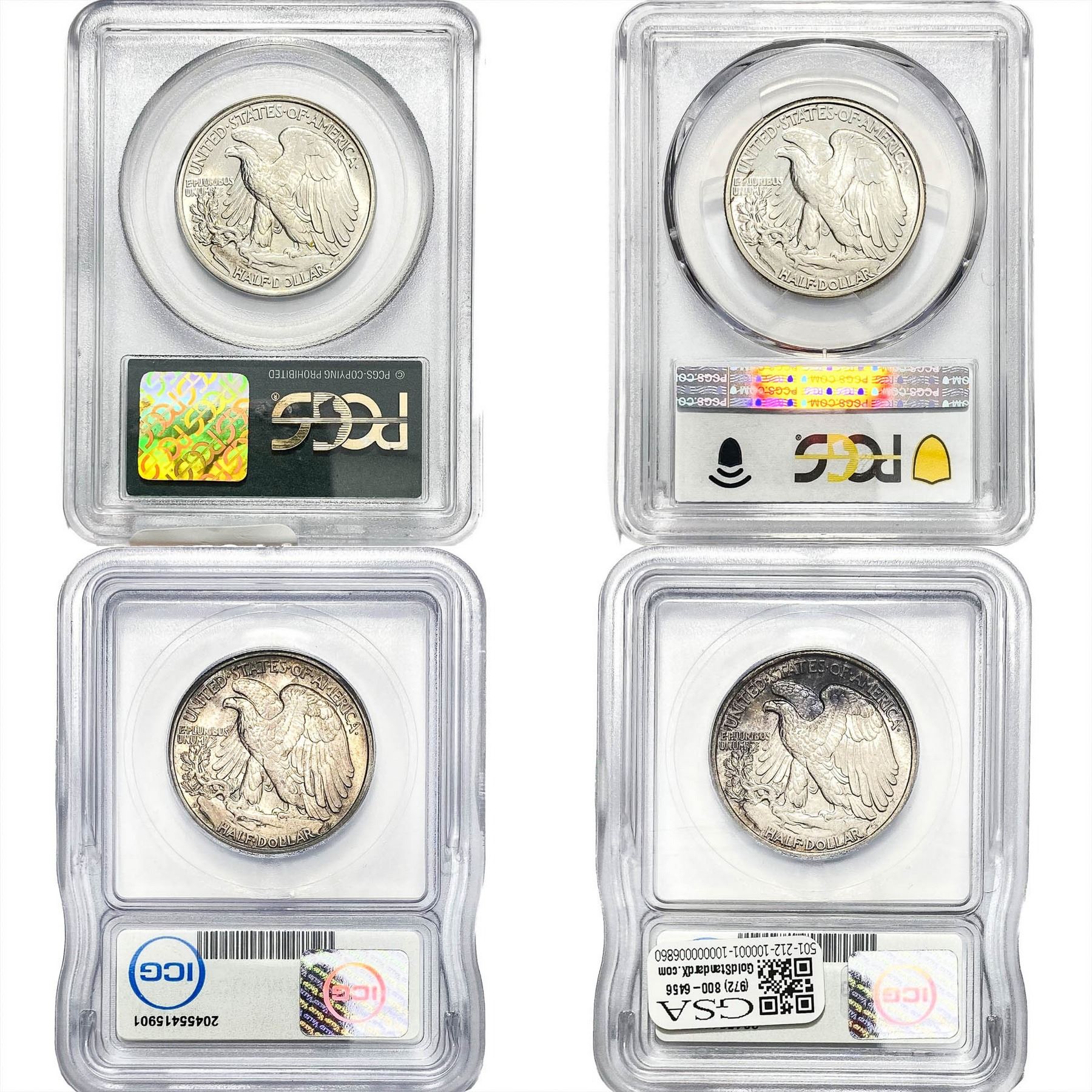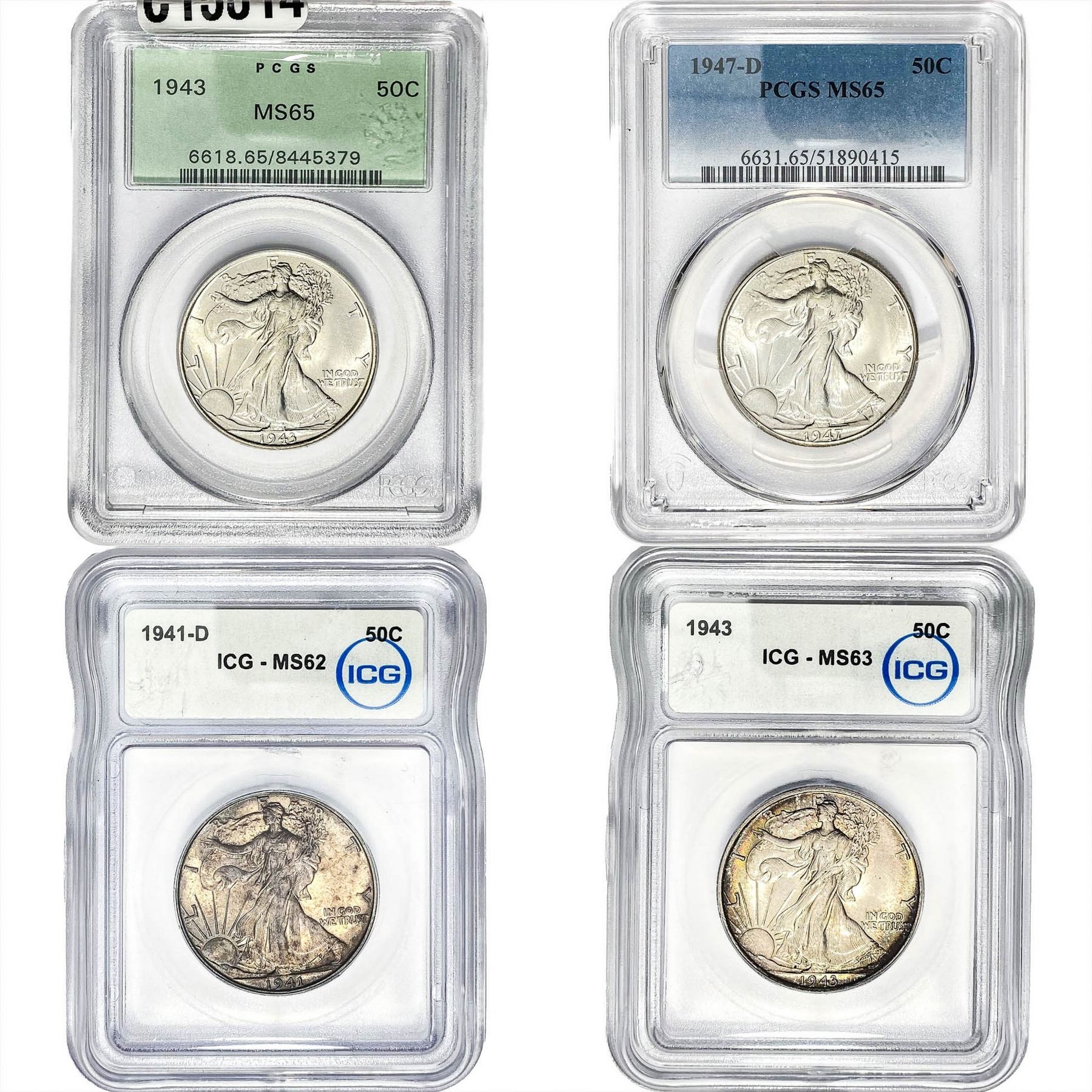 1941-1947 GEM BU Walking Lib Half Dollar [4 Coins] PCGS/ICG MS62/65