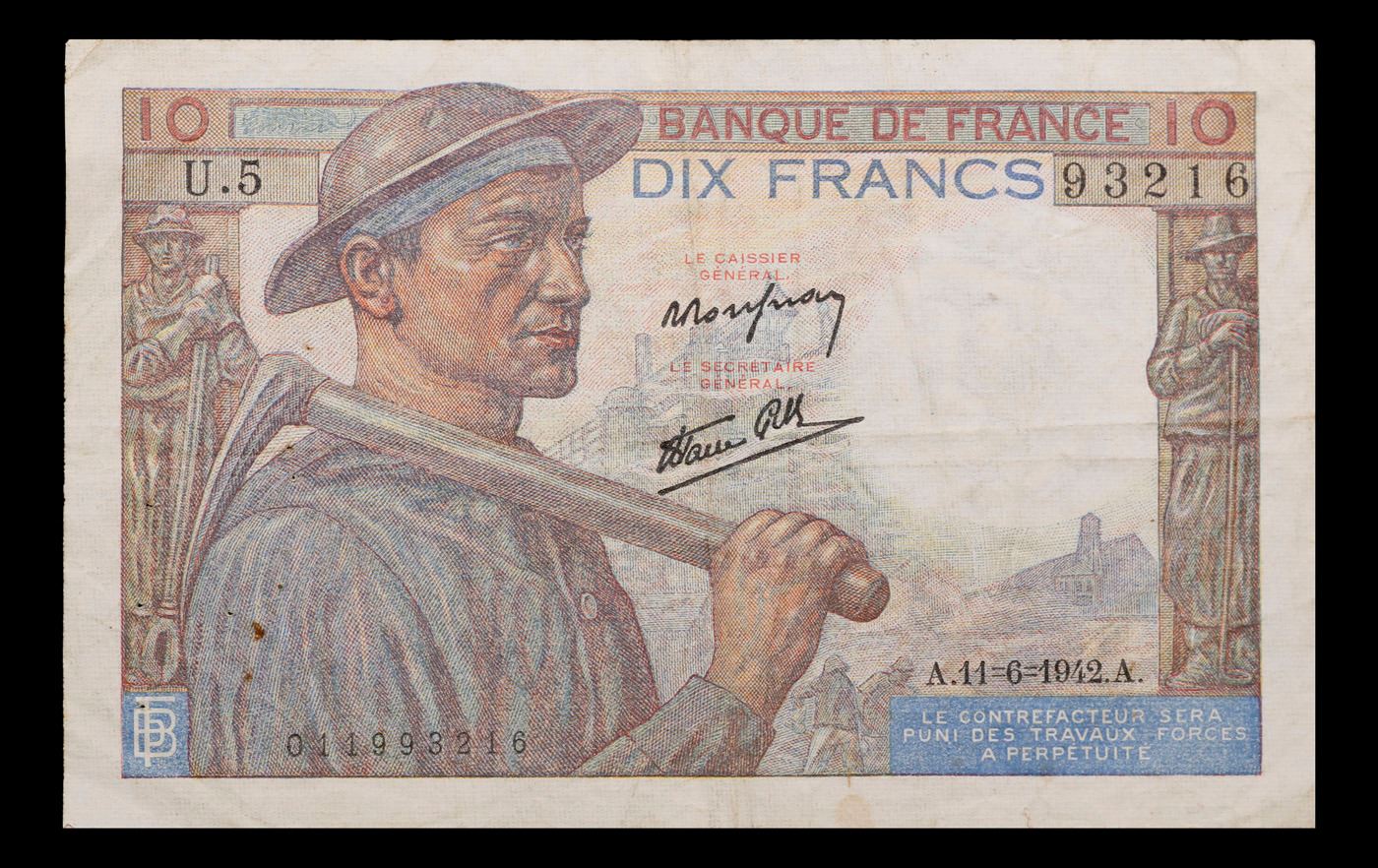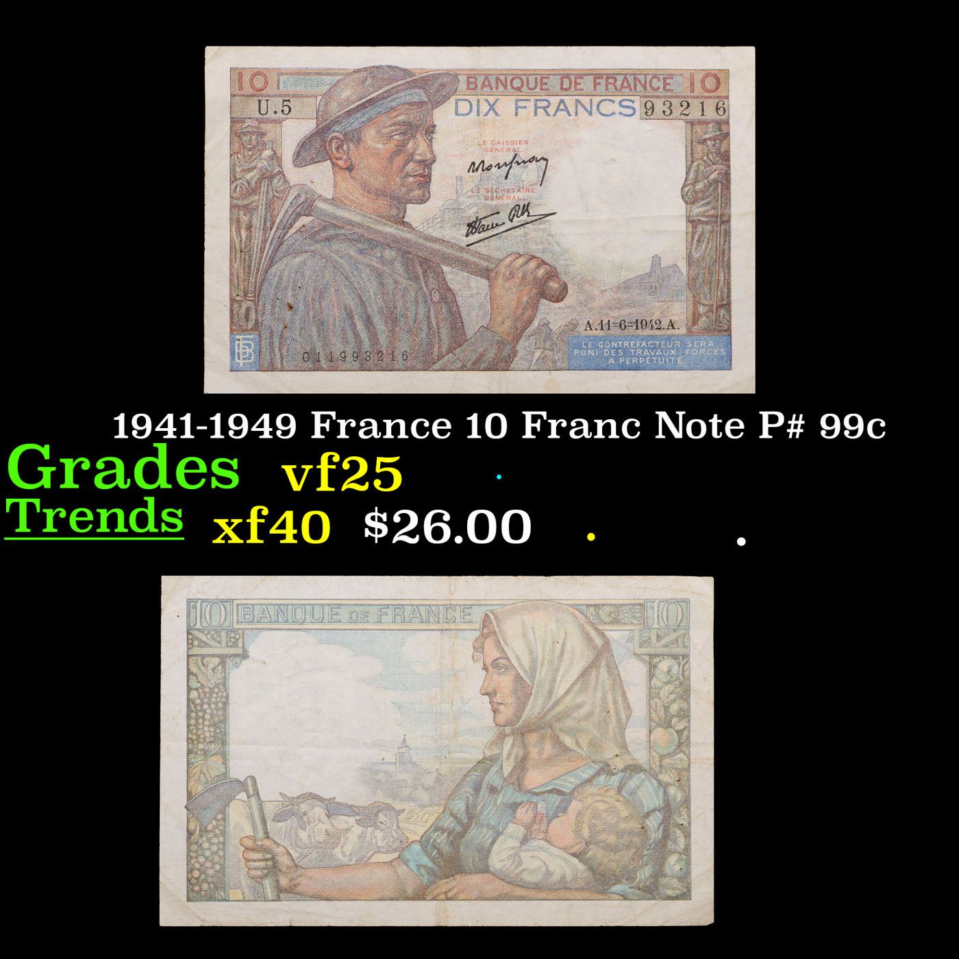 1941-1949 France 10 Franc Note P# 99c Grades vf+.