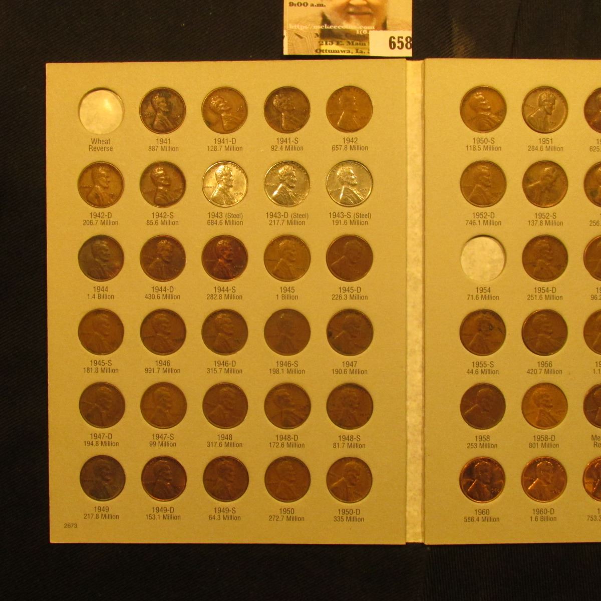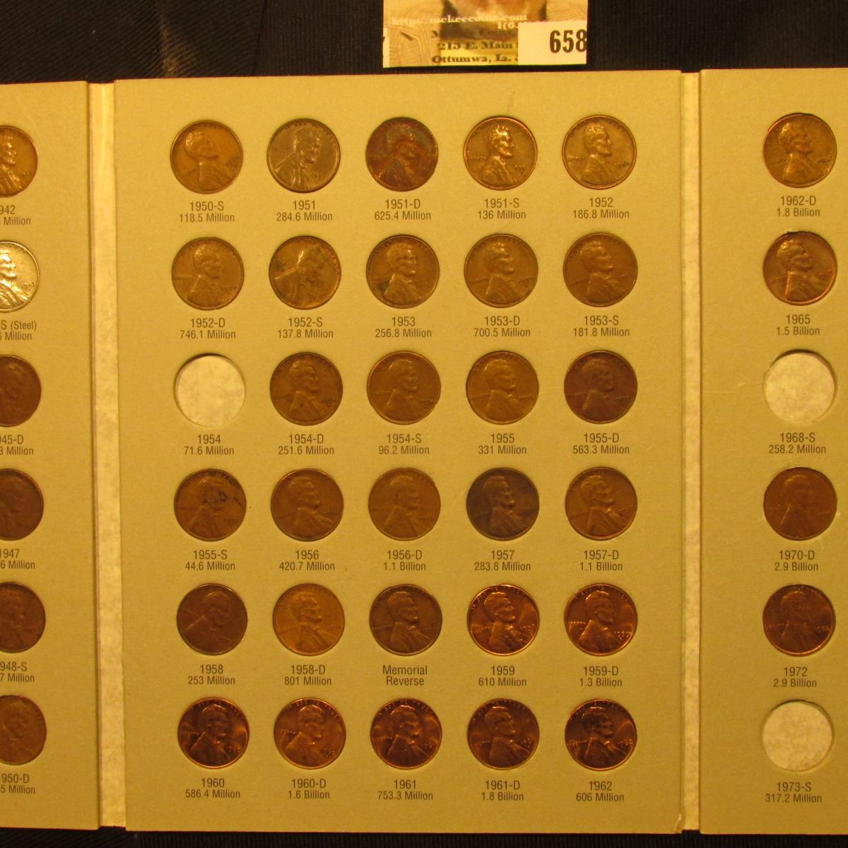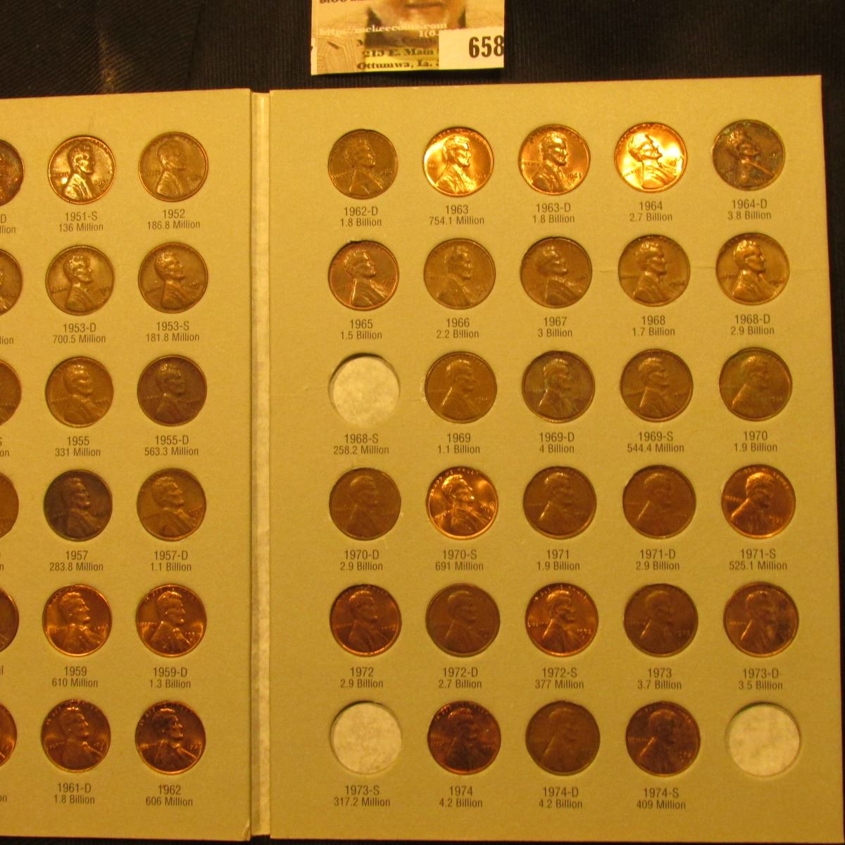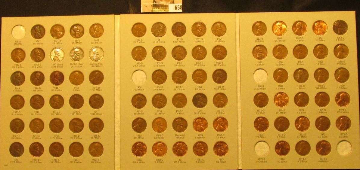 1941-1974 Partial Set of Circulation Strike Lincoln Cents in a Harris Coin folder. Some specimens are nice BU. (85 pcs.).