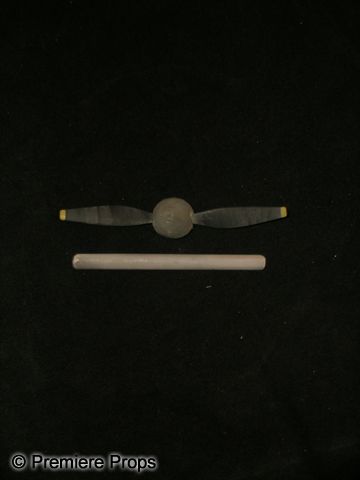 From the 1979 Steven Spielberg comedy 1941, starring Dan Aykroyd and John Belushi, this is a pair of prop parts from one of the model aircraft. In the film, inhabitants of Southern California are on edge after the bombing of Pearl Harbor, and attempt to make their coast defensible against an imagined Japanese invasion. The props include a painted grey, semi-rigid foam propeller and a non-descript grey 'stick' piece.