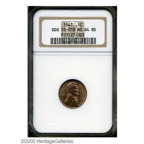 1941 1C Doubled Die Obverse MS64 Red NGC. FS-018. Doub 1941[1C] Doubled Die Obverse MS64 Red NGC.