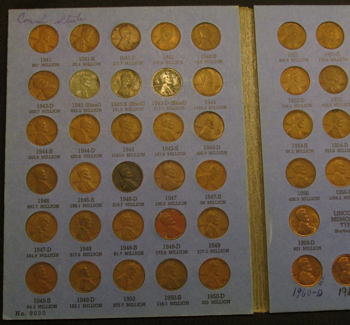 1941-2000 Partial Set of Lincoln Cents in a blue Whitman folder.
