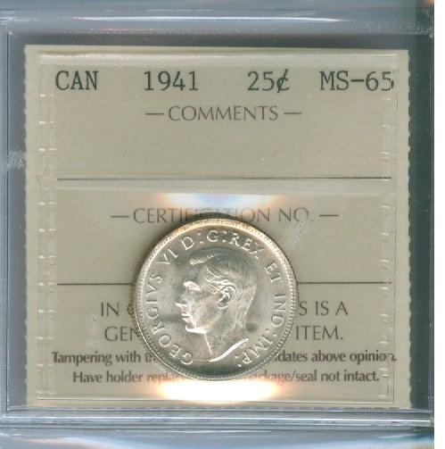 1941 25¢ ICCS MS65. A flashy issue white in colour.