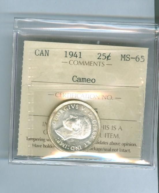1941 25¢ ICCS MS65. Full white example.