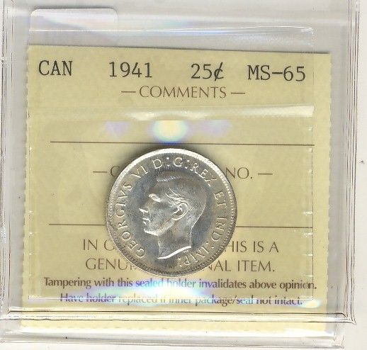 1941 25¢ ICCS MS65. Full white.