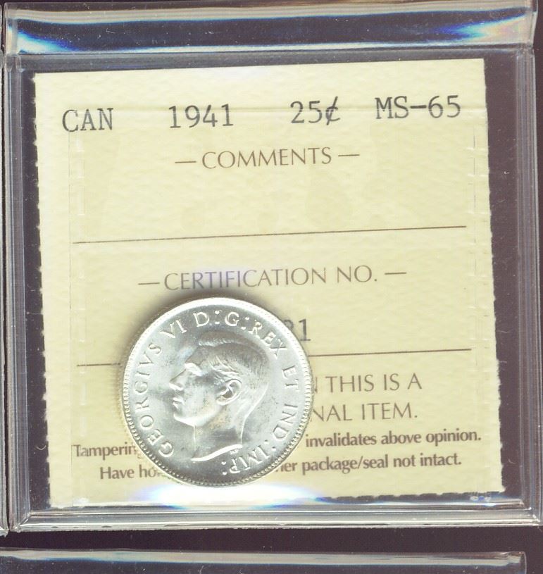 1941 25¢ ICCS MS65. Gem full white and lustrous issue. DV281