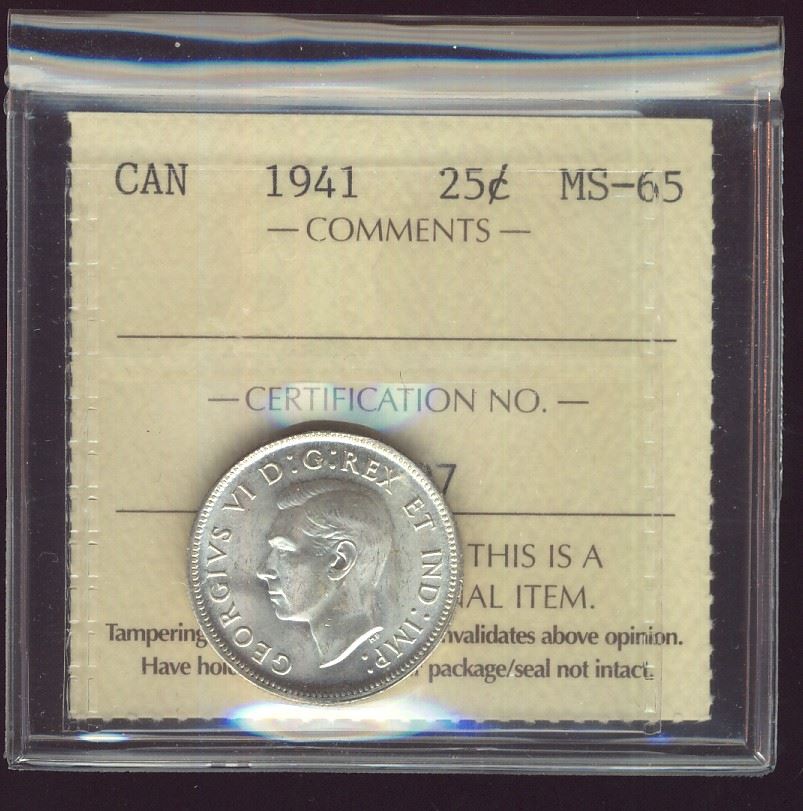 1941 25¢ ICCS MS65. Gem full white and lustrous issue. JZ807