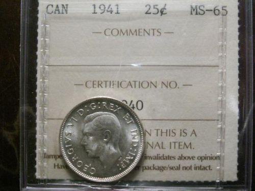 1941 25¢ ICCS MS65PQ+. Fully struck with full white luster. Exceptionally clean fields and surfaces. A lovely "Gem".