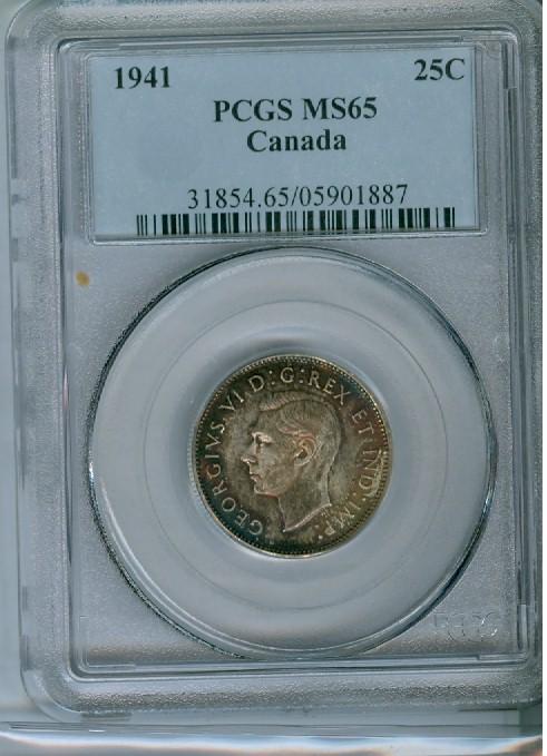 1941 25¢ PCGS MS65. Bluish gold tint on obv.