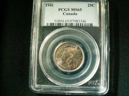 1941 25¢ PCGS MS65PQ. Superb rainbow toning over full underlying lustre.