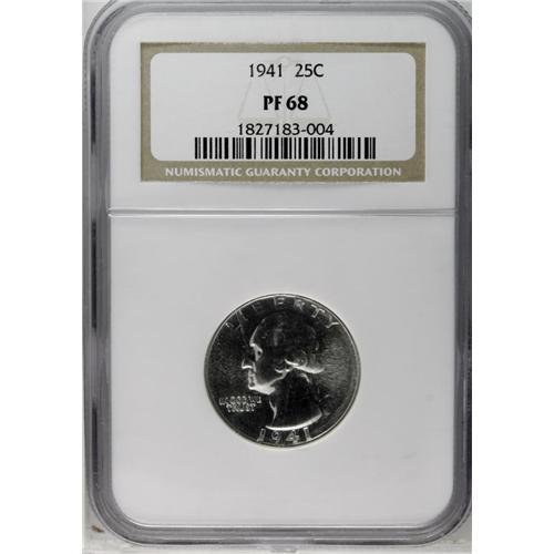 <B>1941<25C> PR68 NGC.</B></I> This brilliant and beautiful Superb Gem appears perfect apart from a hint of striking incompleteness along the right borders. Census: 23 in 68, 0 finer (6/06).