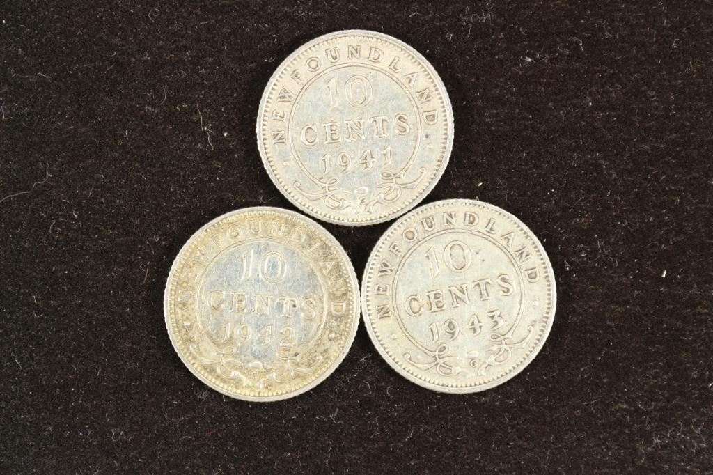 1941,42 & 1943 NEWFOUNDLAND SILVER 10 CENTS