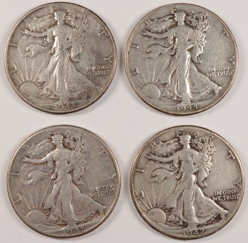 1941, 42, 43, 44 WALKING LIBERTY HALF DOLLARS