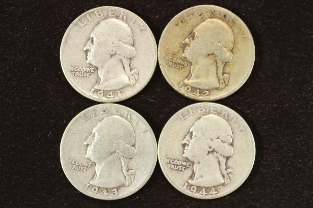 1941,42,43 & 44 WASHINGTON SILVER QUARTERS