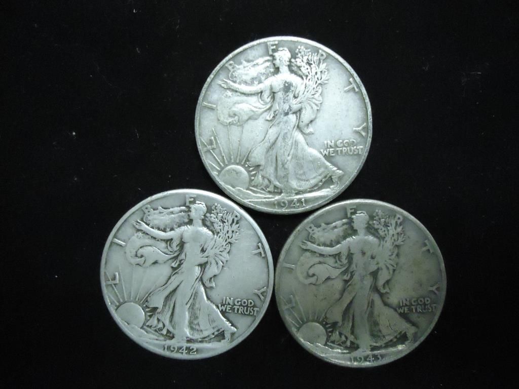 1941,42 & 43 WALKING LIBERTY HALF DOLLARS