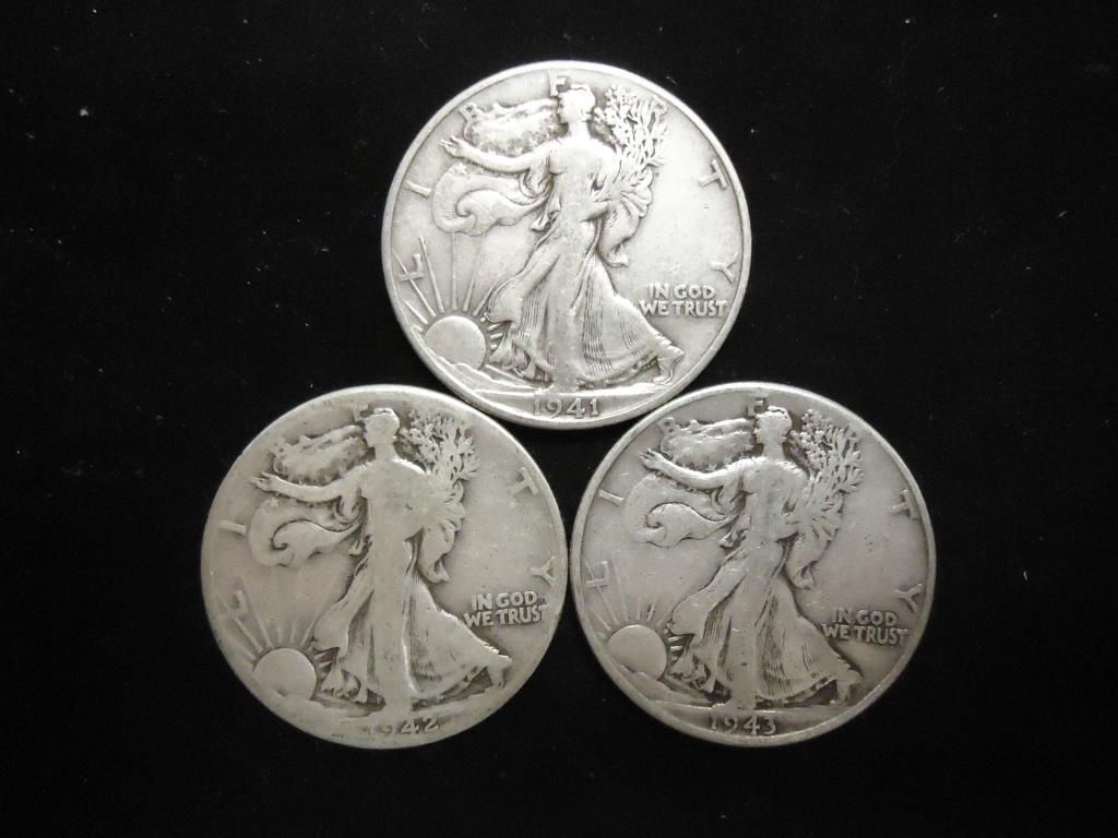 1941,42 & 43 WALKING LIBERTY HALF DOLLARS
