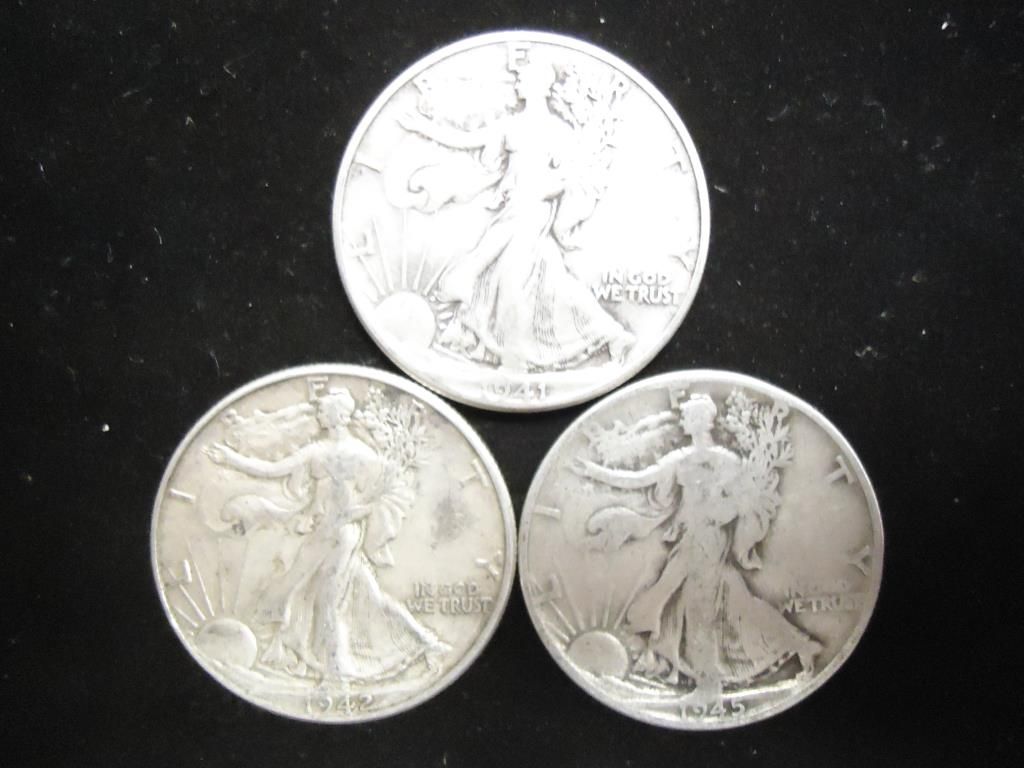 1941,42 & 45 WALKING LIBERTY HALF DOLLARS