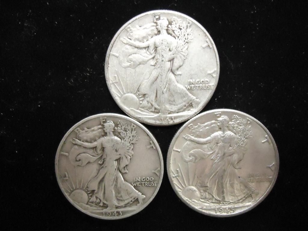 1941,43 & 45-D WALKING LIBERTY HALF DOLLARS