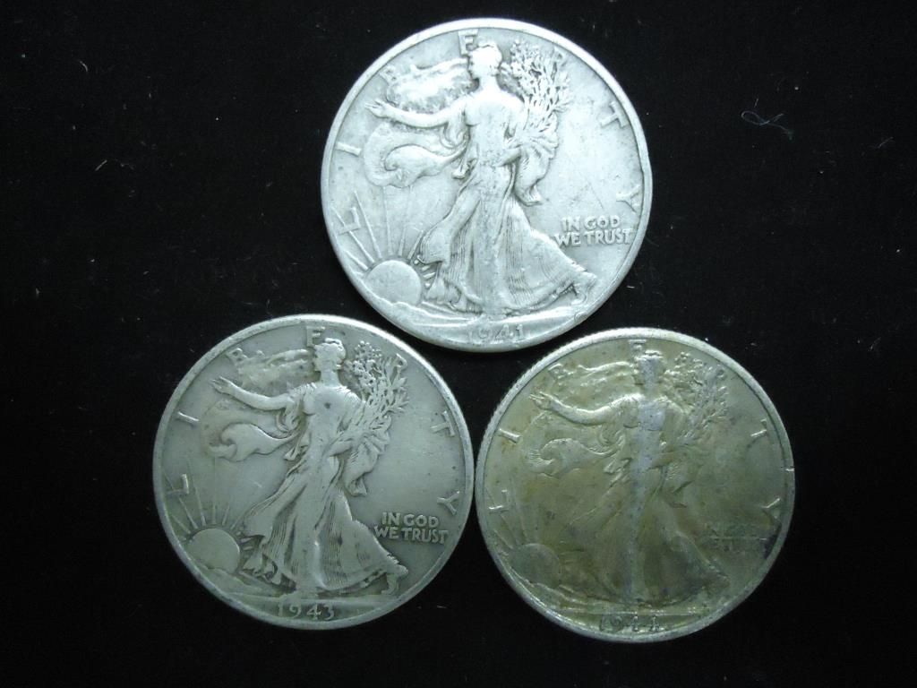 1941,43-D & 44-D WALKING LIBERTY HALF DOLLARS