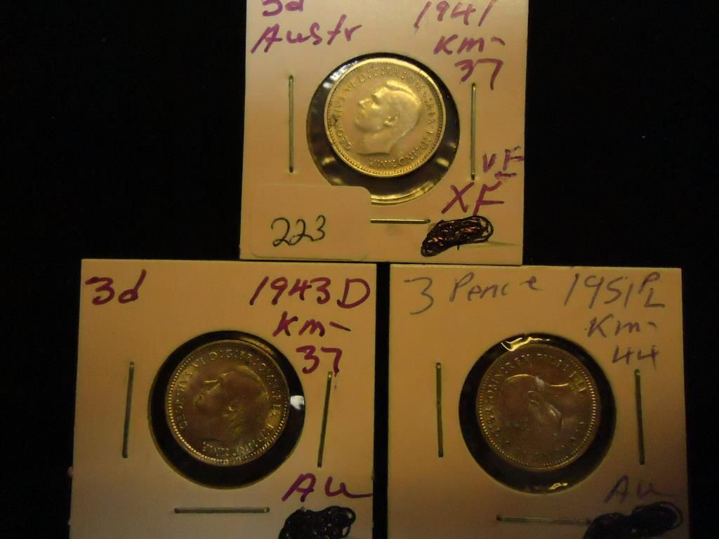 1941,43-D & 51 AUSTRALIAN SILVER 3 PENCE