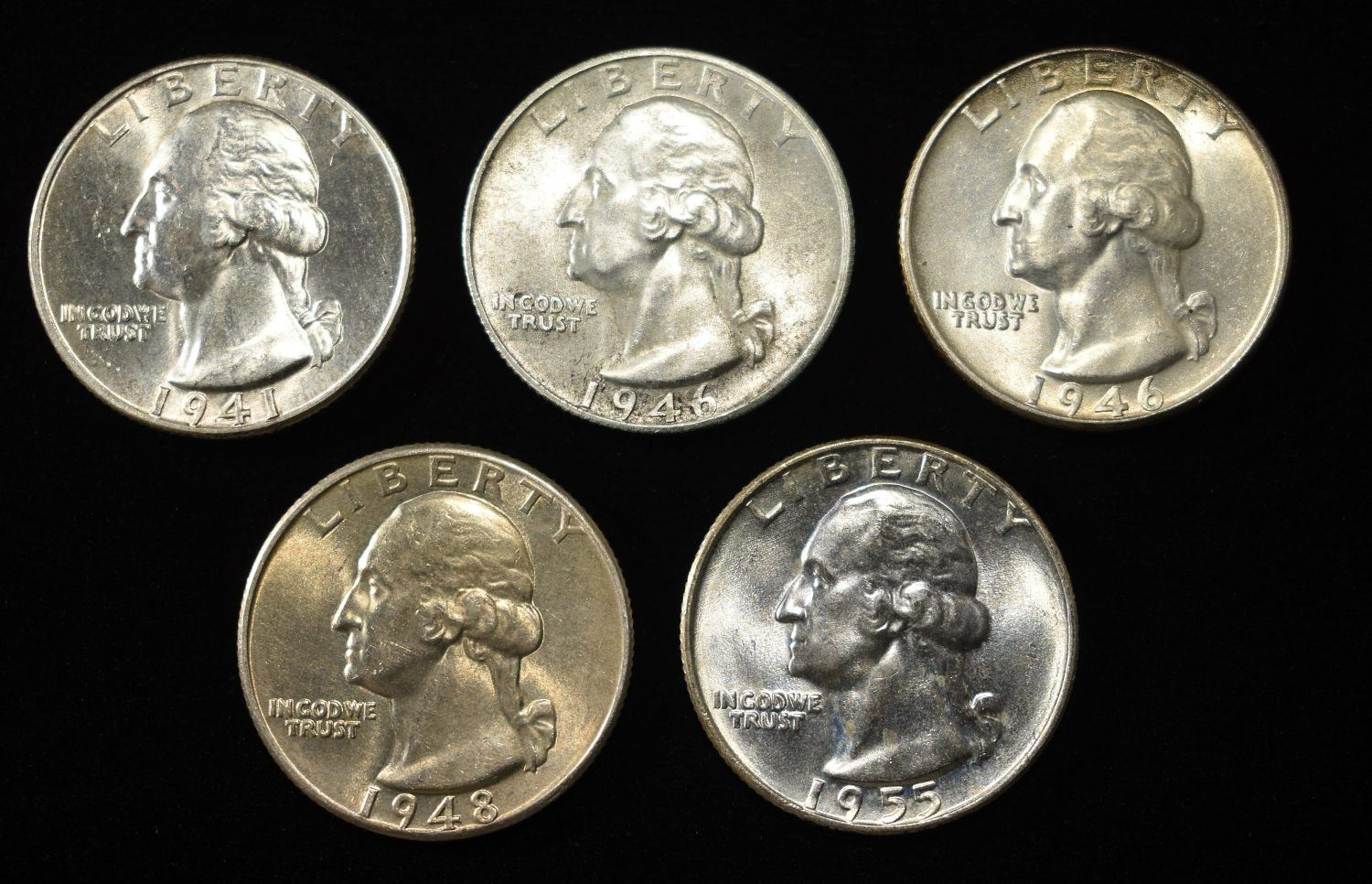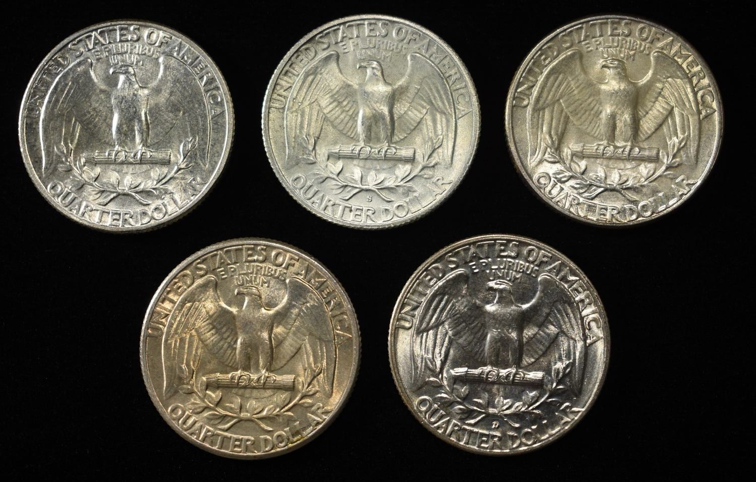 1941, 46, 46-S, 48, 55-D WASHINGTON QUARTERS CH BU