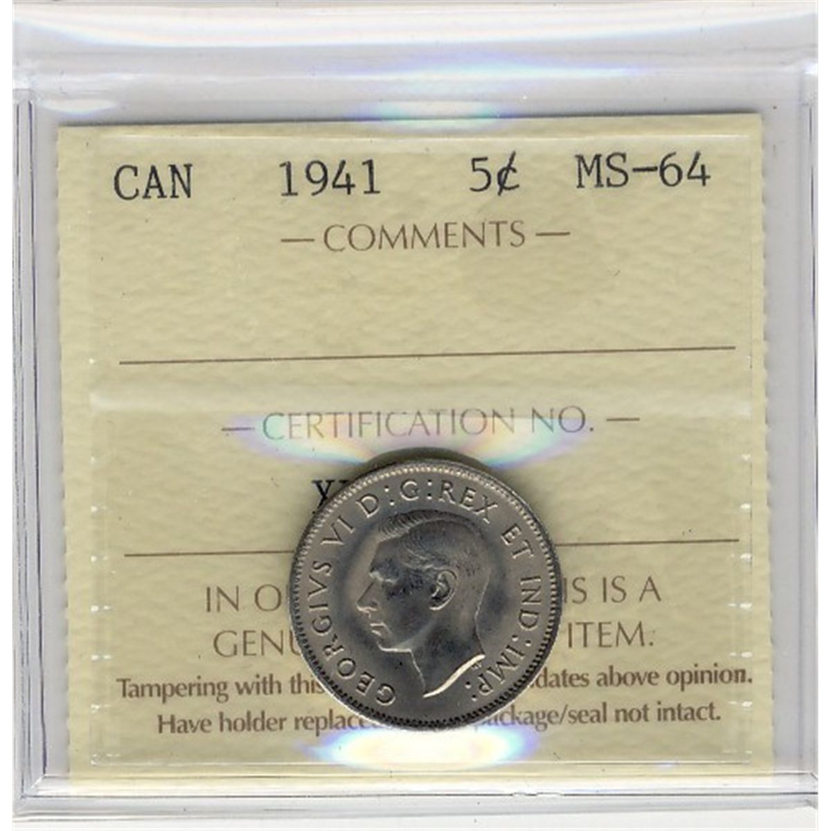 1941 5¢ ICCS MS64. PQ issue.