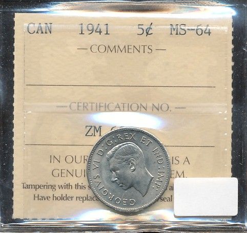 1941 5¢ ICCS MS64. Tough issue for grade.