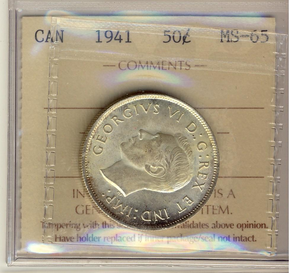 1941 50¢ ICCS MS65. Gem full white issue.