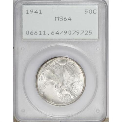 <B>1941 50C MS64 PCGS.</B></I> PCGS Population (2973/6839). NGC Census: (1755/5194). Mintage: 24,207,412. Numismedia Wsl. Price for NGC/PCGS coin in MS64: $48. (#6611)<BR><BR><B>Coin Engraver:</B> Adolph A. Weinman<BR><BR><b>Shipping:</b> Coins & Currency (<a target="_blank" href="http://www.heritageauctions.com/common/shipping.php">view shipping information</a>)