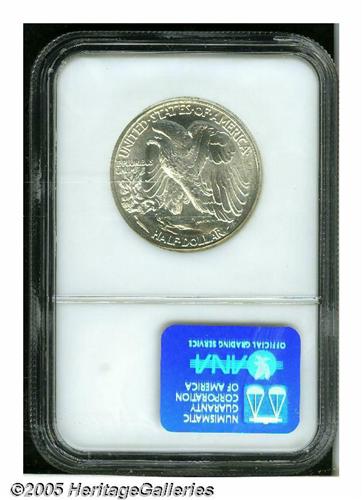 <B>1941<50C> MS67 NGC.</B></I> Even brilliant untoned examples come in different degrees of white, and this example is about as bright and beautiful as any Walker could be. It is fully struck with satiny luster and unblemished surfaces. For the collector seeking a high quality representative example of the design, this is an excellent choice.<BR><I>From The Robert Moreno Collection.</B></I>