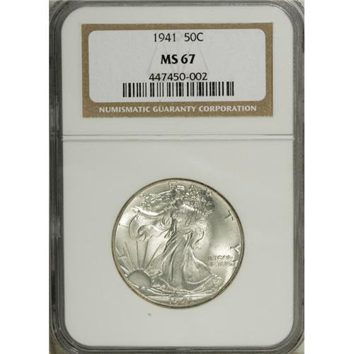 <B>1941 50C MS67 NGC.</B></I> Highly lustrous and practically untoned with excellent detail on Liberty's thumb. An eminently pleasing representative of this short-set issue.<BR><BR><b>Shipping:</b> Coin/Currency (<a target="_blank" href="http://www.heritageauctions.com/common/shipping.php">view shipping information</a>)