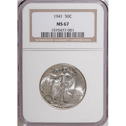 <B>1941 50C MS67 NGC.</B></I> Brilliant and fully struck with dazzling mint luster. An excellent high grade type coin.<BR><BR><b>Shipping:</b> Coins & Currency (<a target="_blank" href="http://www.heritageauctions.com/common/shipping.php">view shipping information</a>)