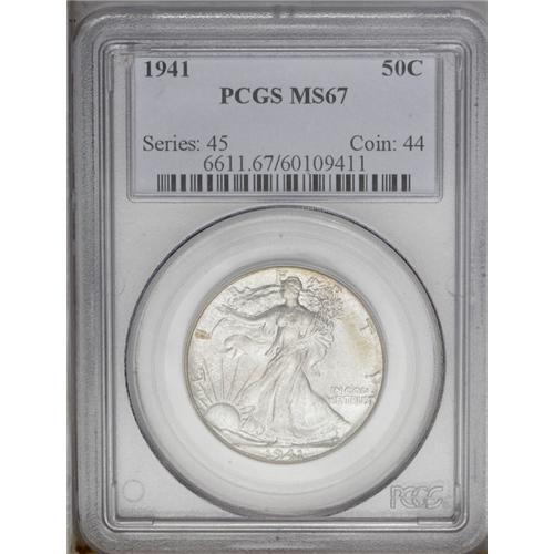 1941 50C MS67 PCGS. A Superb example with frosty silve 1941[50C] MS67 PCGS.