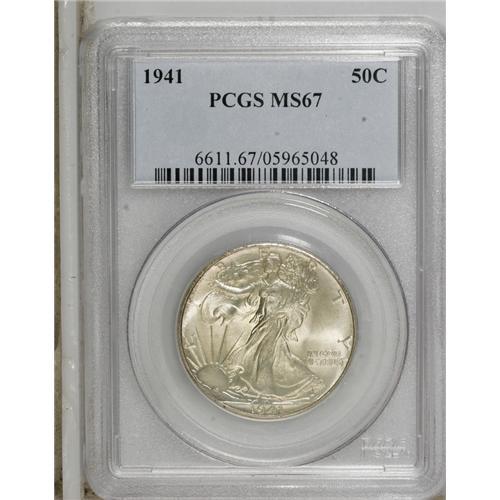 1941 50C MS67 PCGS. A thin veneer of champagne-gold co