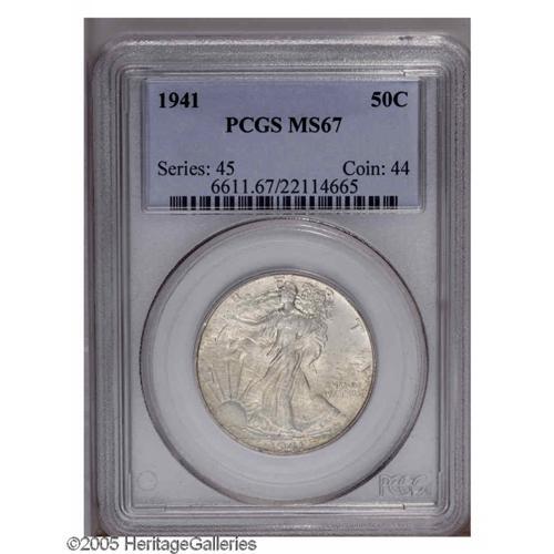 1941 50C MS67 PCGS. Hints of milky gray-golden patina 1941[50C] MS67 PCGS.