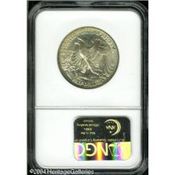 1941 50C MS67 S NGC. A lustrous and sharply struc <B>1941 50C MS67 S NGC.</B></I> A lustrous and sharply struck Superb Gem that has blushes of apricot and olive color across each side. Lovingly preserved. Population: 15 in 67 S, 2 finer with the star designation (9/04). <BR><BR><B>Important notice:</B> Heritage usually auctions material at the rate of 200-250 lots per hour. On some occasions eBay Live bid software or the Internet may not be able to keep up with the pace of the auction. We recommend placing a realistic absentee bid now as insurance to avoid disappointment. Occasionally the auctioneer may eliminate or reject an eBay Live bid, and the auctioneer may also reopen a lot after the close of the eBay live bidding (usually because we missed an audience bid), and may reject your bid even if it shows you as the winning bidder. By bidding via eBay Live, you agree that Heritage may award the lot to another bidder at its sole discretion under the circumstances described above or any other reasonable circumstances. Since eBay bids are not shown to us until we open the lot on the floor, we treat those bids just like floor bids. In most cases the floor responds before the eBay bid is presented to us, due to Internet lag time, so for consistency we have made it a policy that floor bids are always considered first over tie eBay live bids. Also please note that all Heritage lots purchased through eBay Live carry a 20% Buyer's Premium. Please make sure you read the Terms and Conditions before you bid. This lot is being auctioned in conjunction with a live floor auction by Heritage Galleries & Auctioneers. All final auction and invoice information will be supplied by Heritage Galleries & Auctioneers, and all other information should be considered preliminary. Lot:6208